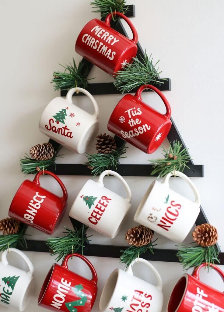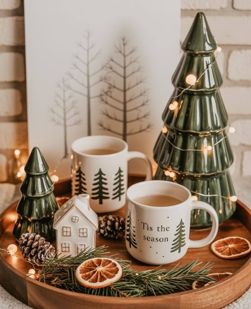 This one’s for the mug collectors! A mug tree stand filled with Christmas mugs — especially gingerbread or Santa-themed ones — adds instant holiday cheer to your countertop. It’s functional and decorative at the same time.