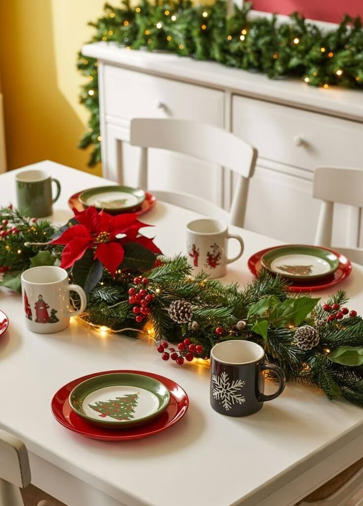 For coffee lovers, this might be the best idea on the list. A small Christmas-themed coffee or hot cocoa station instantly makes mornings feel more magical. Use holiday mugs, candy canes in jars, and a mini Christmas tree to complete the look.