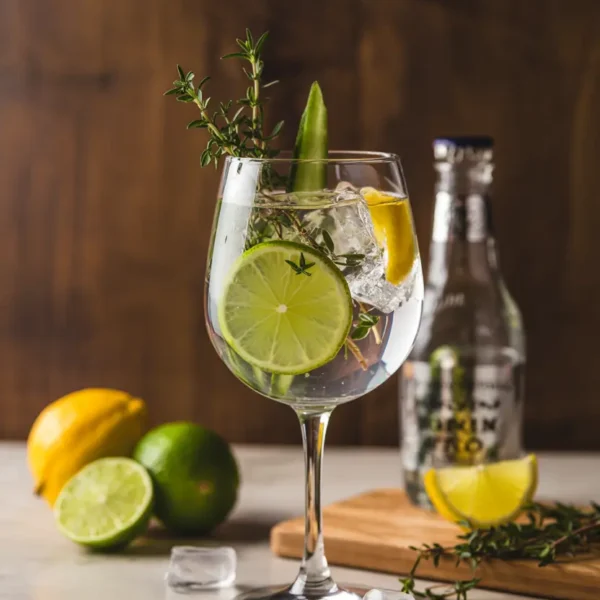 Method: Fill a large wine glass or copa glass with ice. Add elderflower cordial and lime juice. Top with premium tonic water. Stir gently. Garnish with fresh herbs, a cucumber ribbon, and a lime wheel.