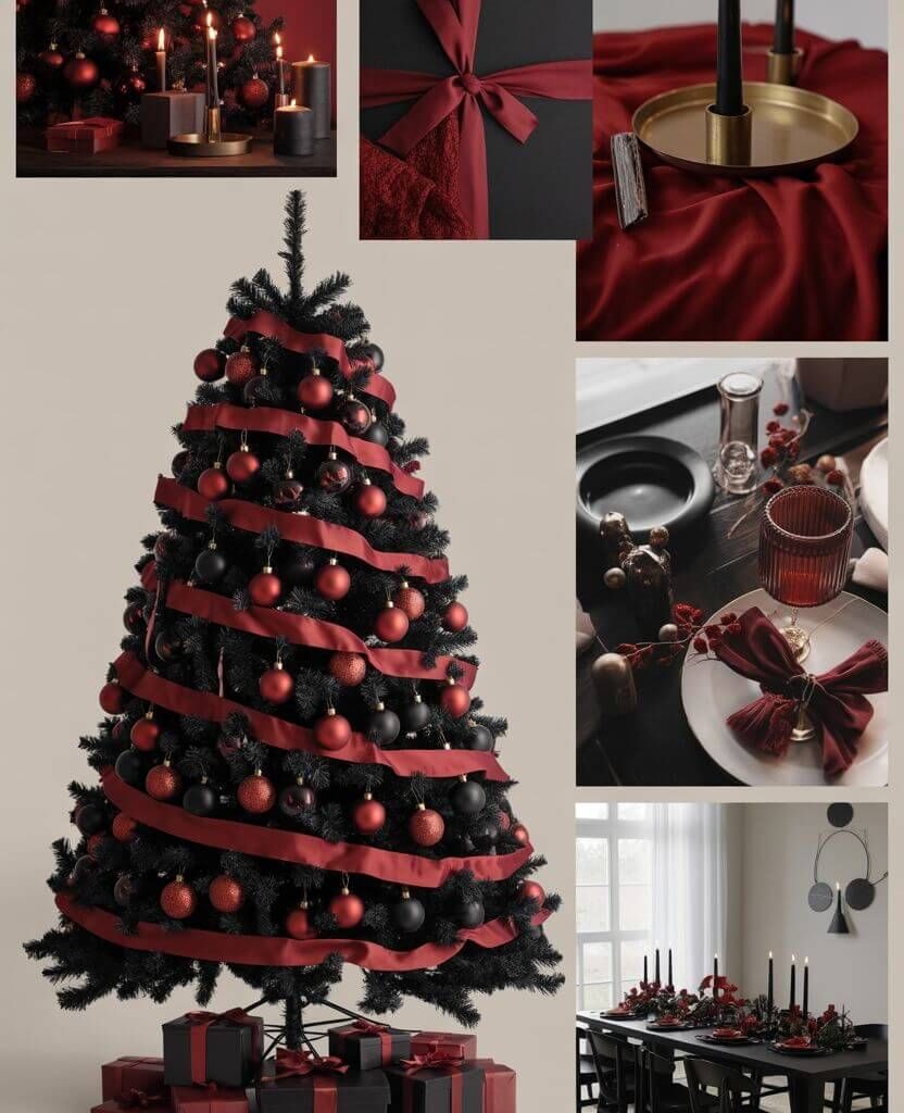 - Black & Burgundy Christmas Tree: Rich and romantic, perfect for cozy homes.