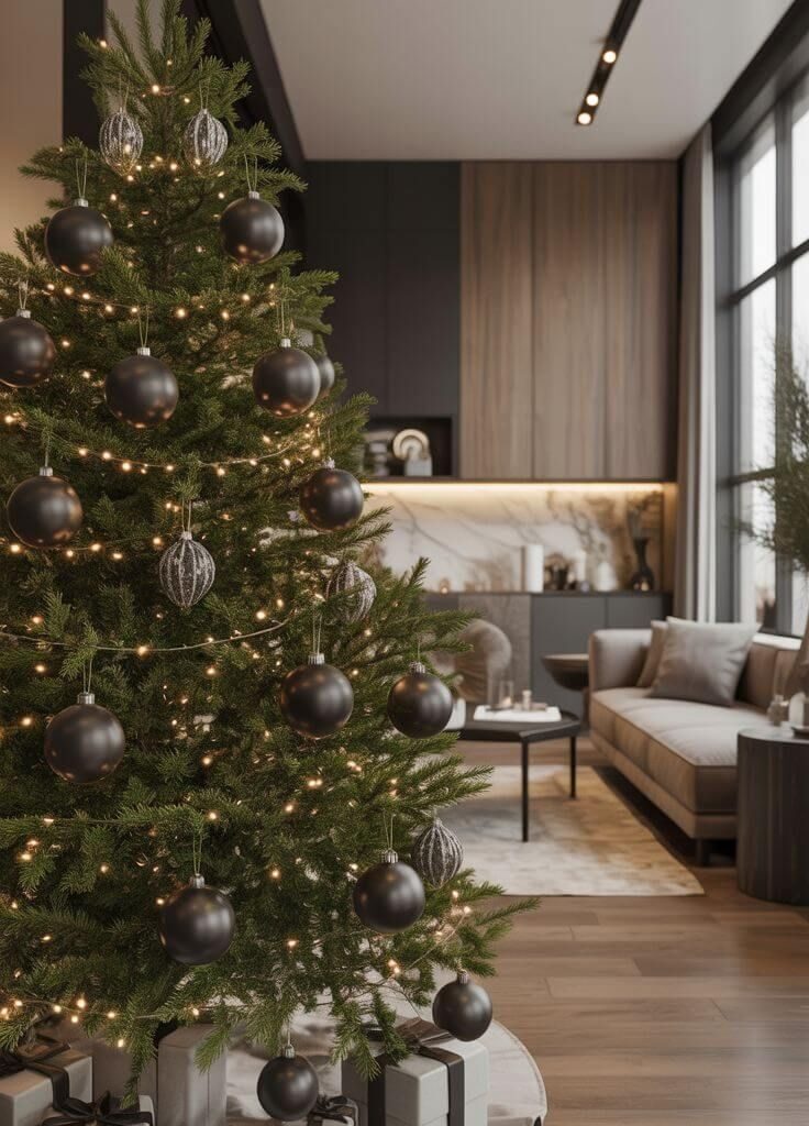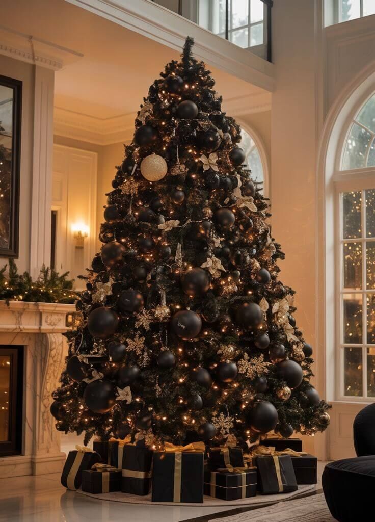 4. Elegant and Modern Black Christmas Tree Decor