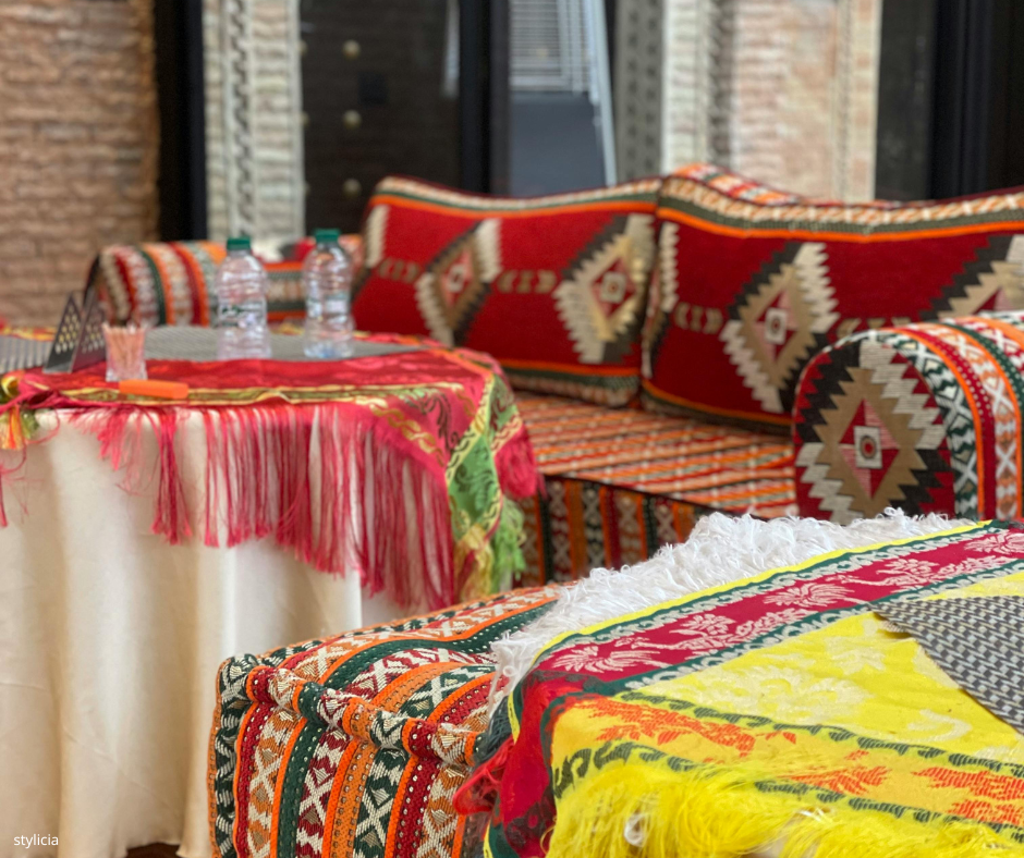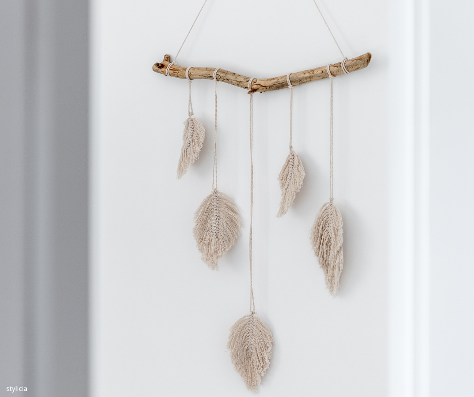 Fringed cushions, macramé decorations, and a couple of woven baskets fit perfectly into a bohemian aesthetic.