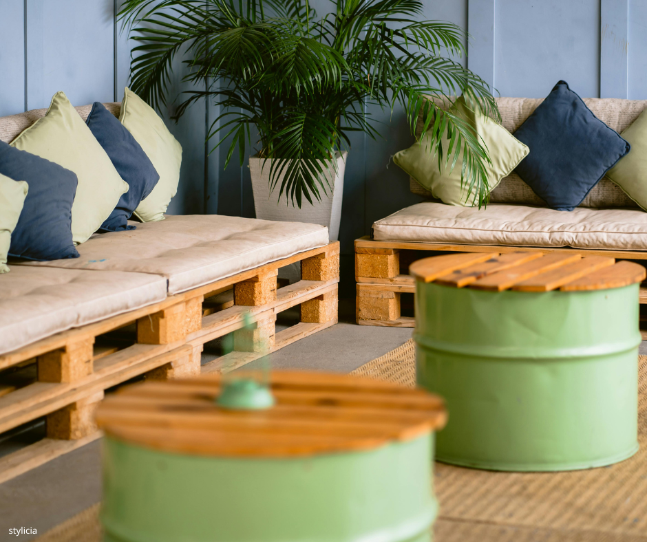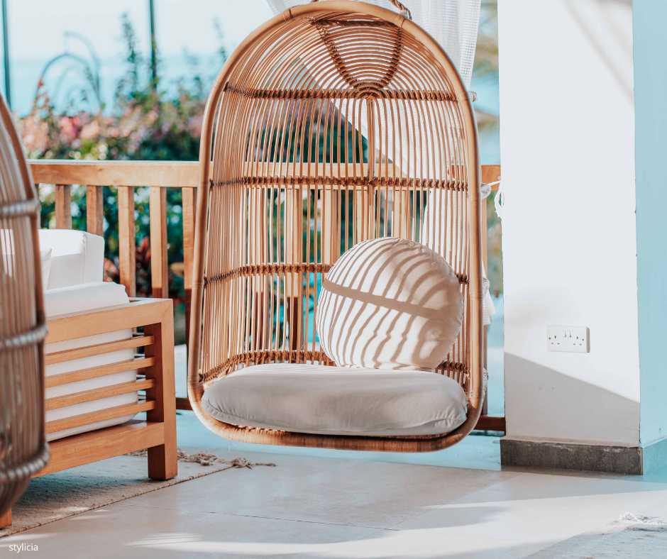 If space allows, a comfortable swing chair or woven armchair can add a touch of luxury. A small foldable bench or pallet furniture is also a great option.