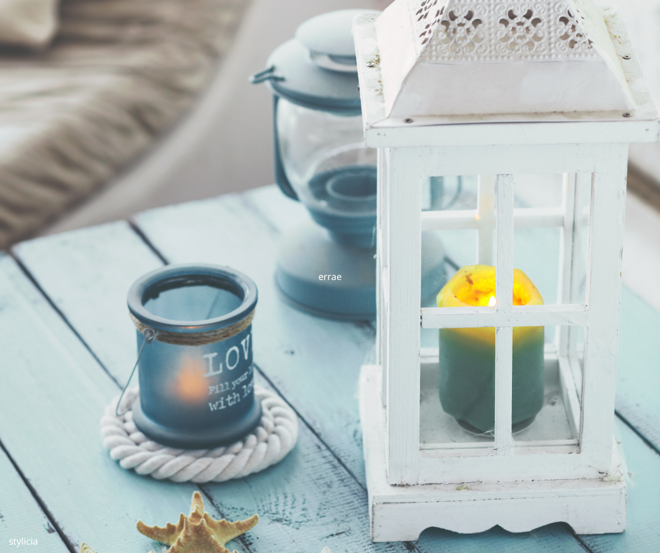 Blue and white color schemes, a few seashell decorations, and woven furniture bring the refreshing feel of the sea breeze to your space.