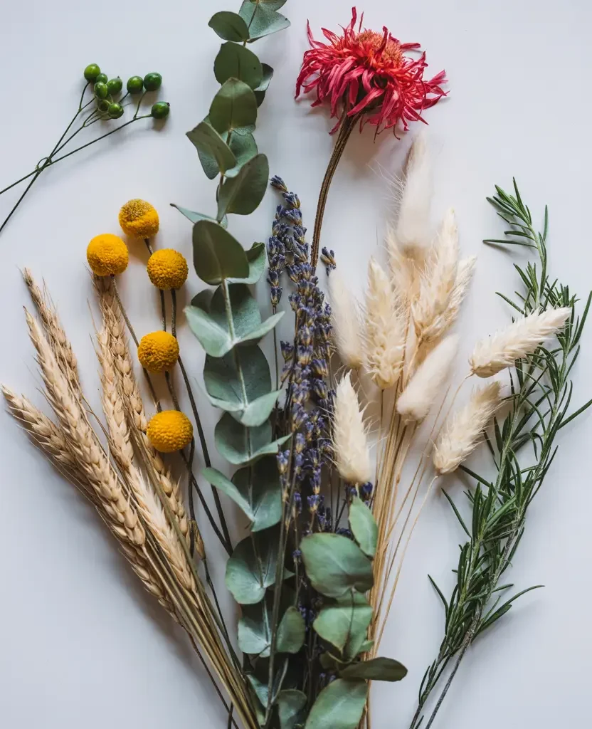 - Your own garden or natural environment: foraged branches, wildflowers, eucalyptus, dried grasses