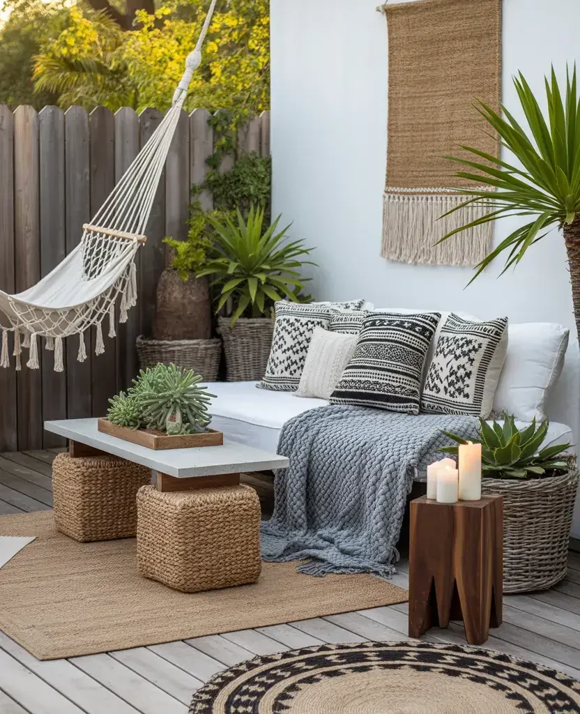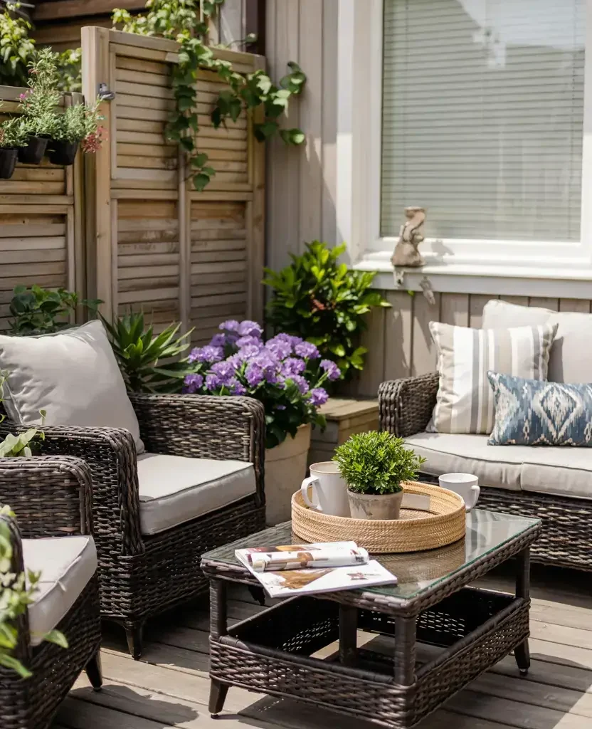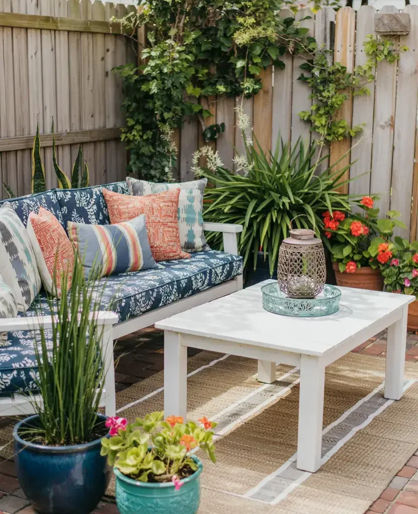 Stick to a tight color palette. In a small backyard patio, cohesion always feels more luxurious than variety.