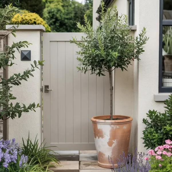For 2026, the most-saved pot styles on Pinterest are aged terracotta, weathered lead-effect fibreglass, and large stone-look planters in off-white or warm grey. Planted with a single statement plant — an olive tree, a standard bay, or a cloud-pruned box — a large pot instantly elevates the front garden from tidy to designed.